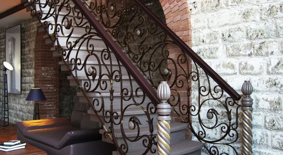 - Универсальный характер. Стальные лестничные ограждения прекрасно сочетаются с разными материалами: деревом, стеклом, камнем, плиткой и другими.