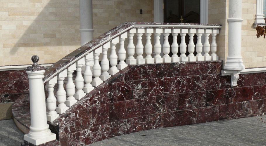 - Перила без ригелей. Такие модели обладают меньшими показателями безопасности, поэтому их устанавливают в местах, где перила используются только в качестве поручней: у бассейнов, на крыльце с небольшим количеством ступеней и так далее.